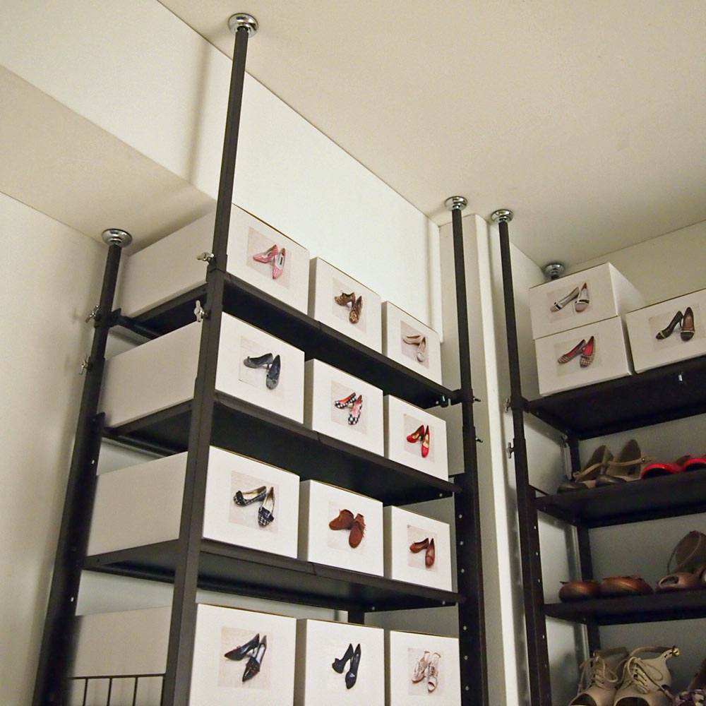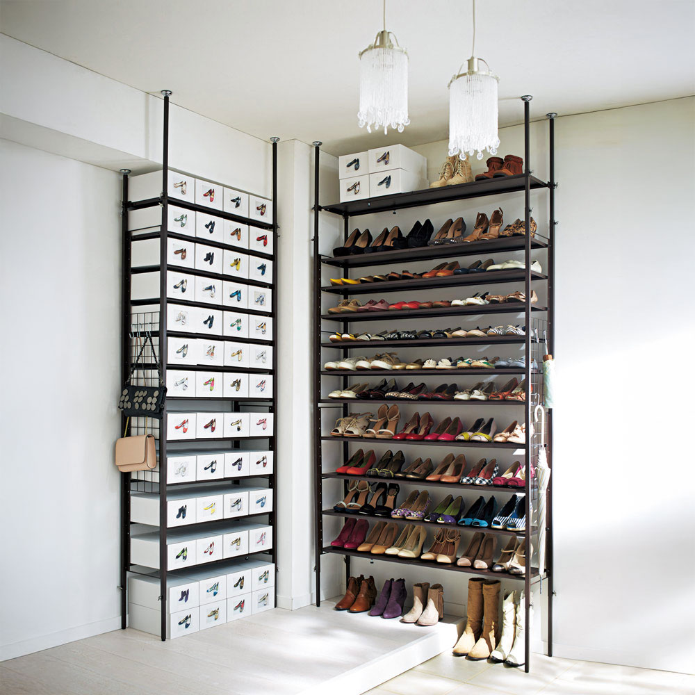 ◆幅は67.5~96.5cmの間で伸縮でき、靴を約33~55足収納可能。