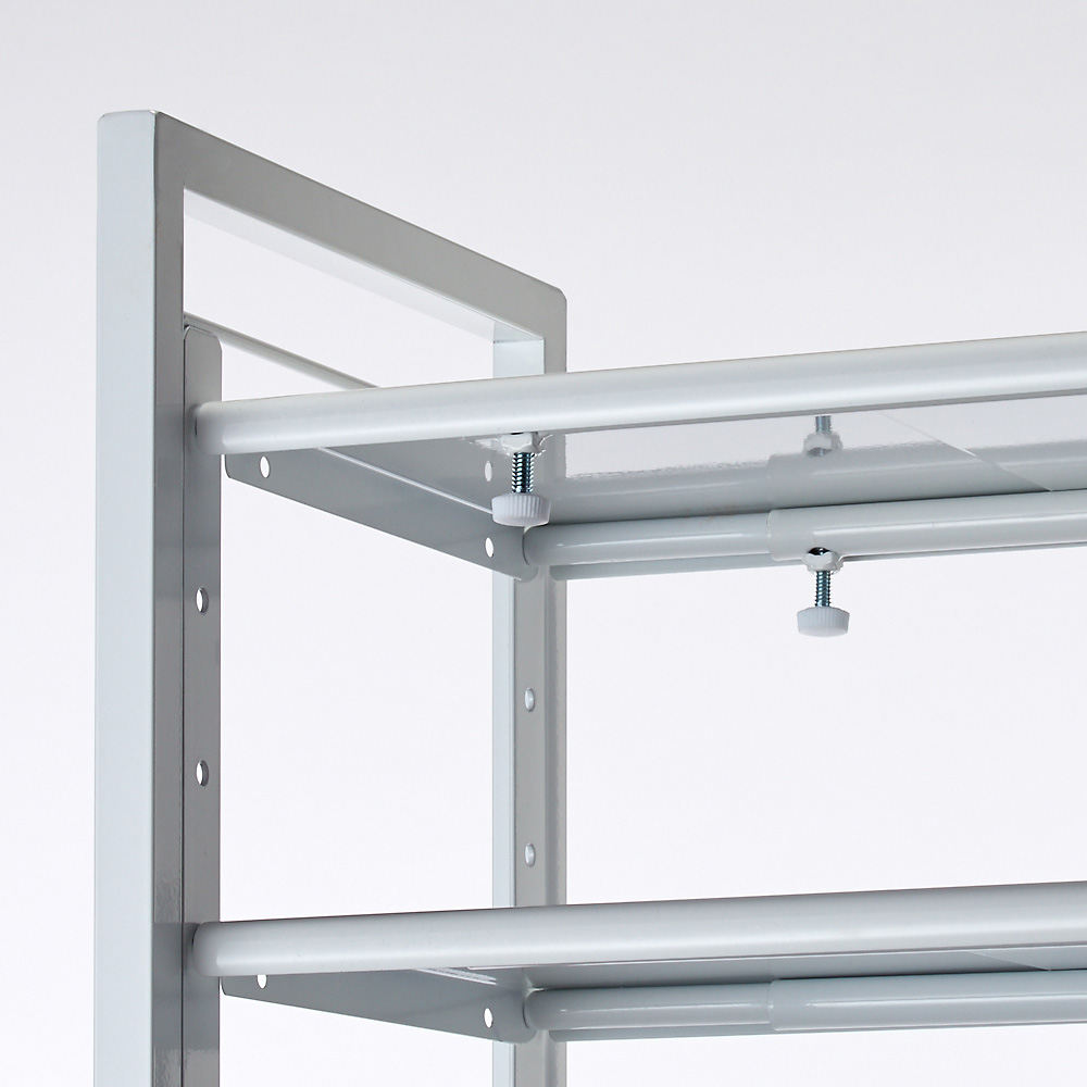 突っ張り棒部にも収納が可能な可動式の棚板付き。