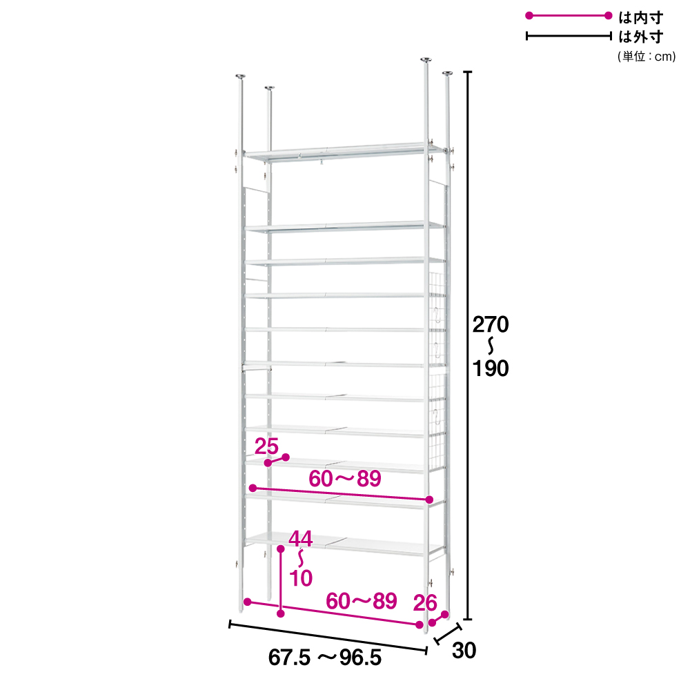 ■サイズ:幅67.5~96.5奥行30高さ190~270cm