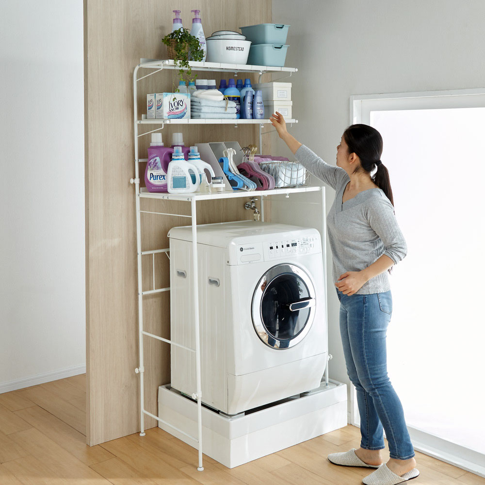 32cmまでの段差対応 奥行たっぷりランドリーラック 棚2段 洗濯機ラック ランドリーラック 洗濯用品 物干し 541506