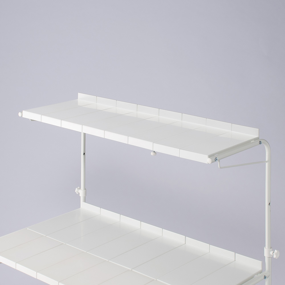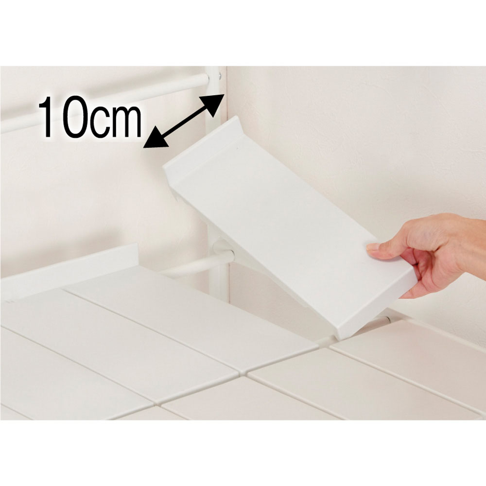 棚板はお手入れしやすい樹脂製。さらに分割式なのでお好みの幅に合わせてぴったり設置ができます。