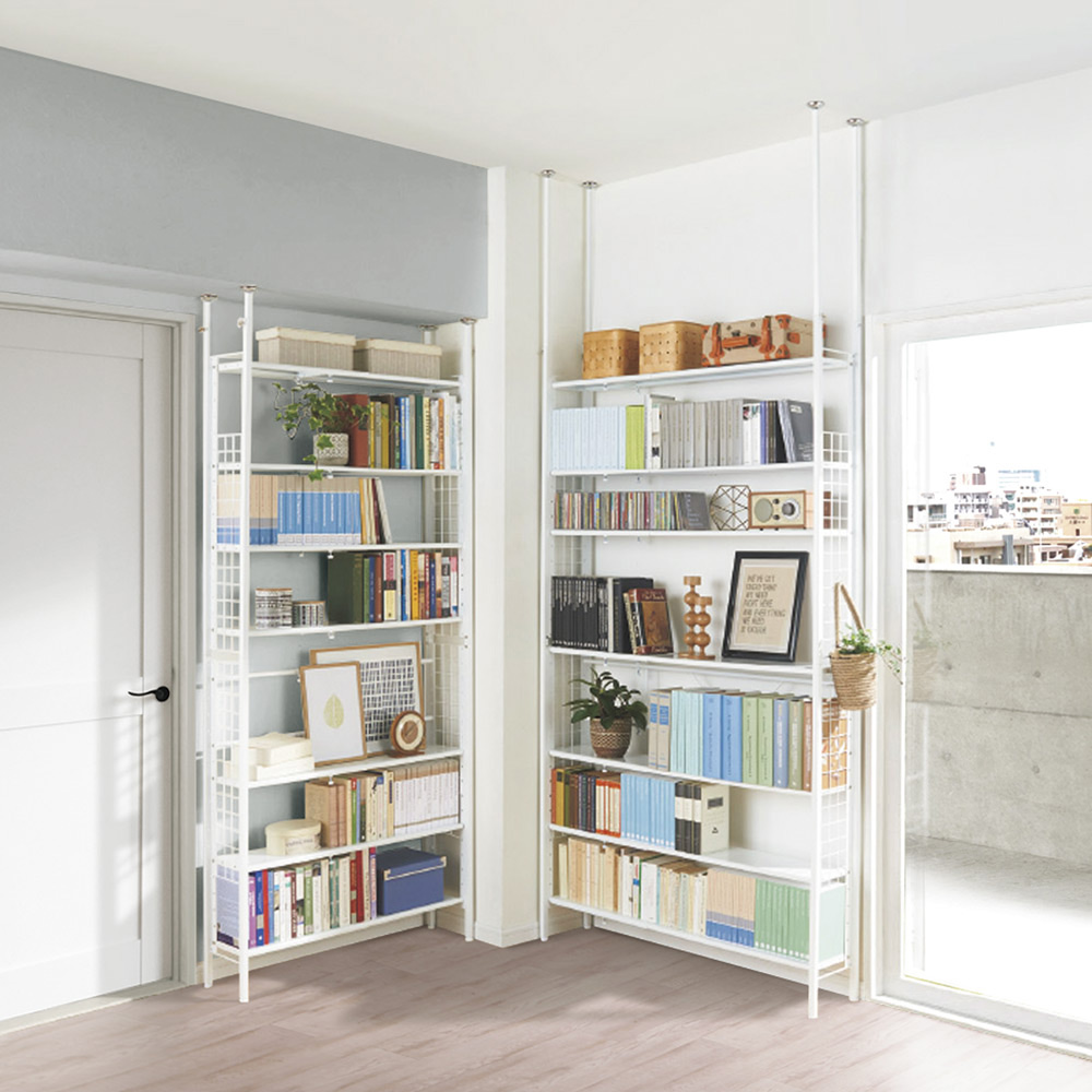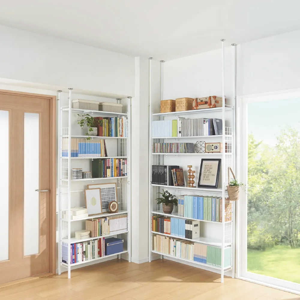 幅も高さも無段階の伸縮式で、置きたい場所にピタッとフレキシブルに