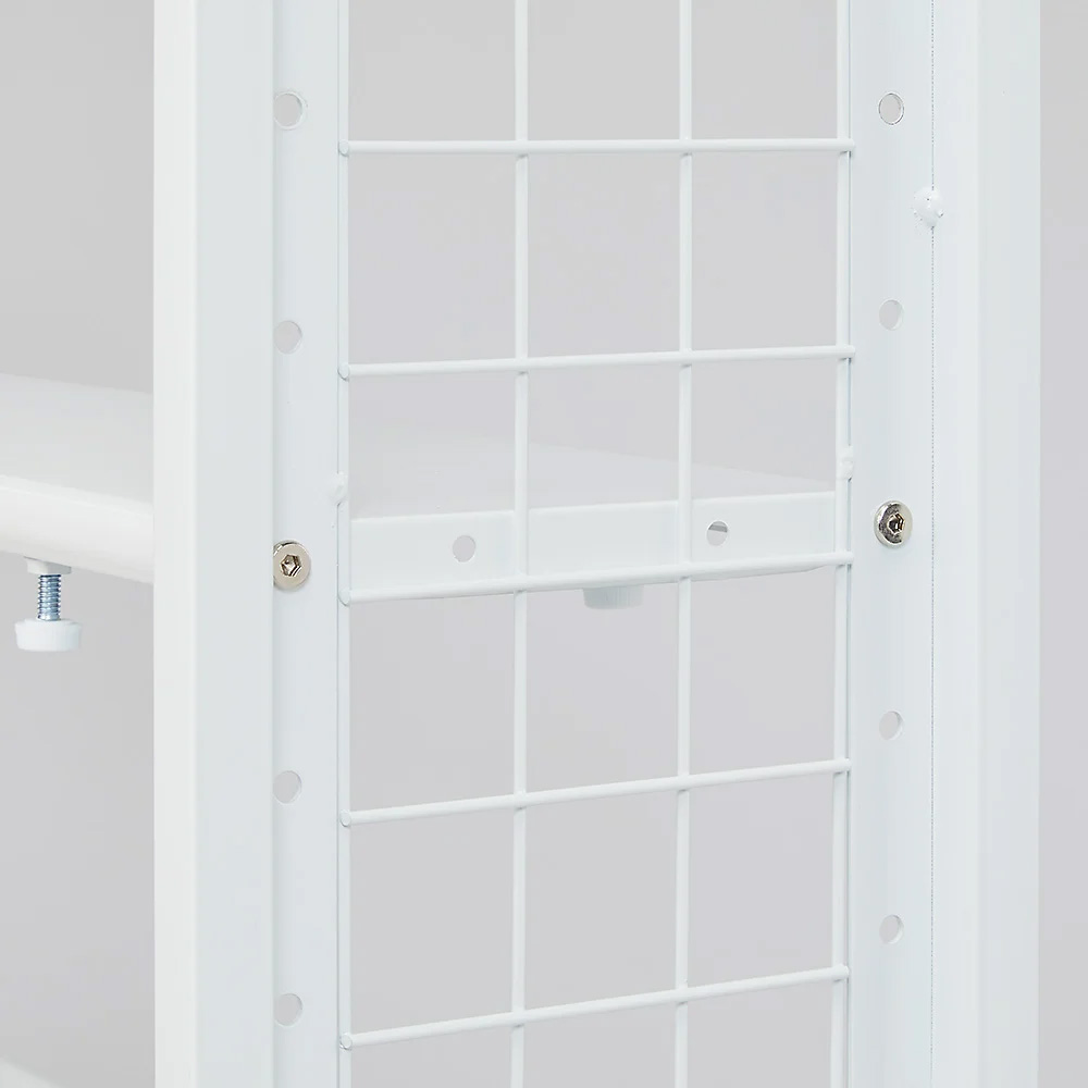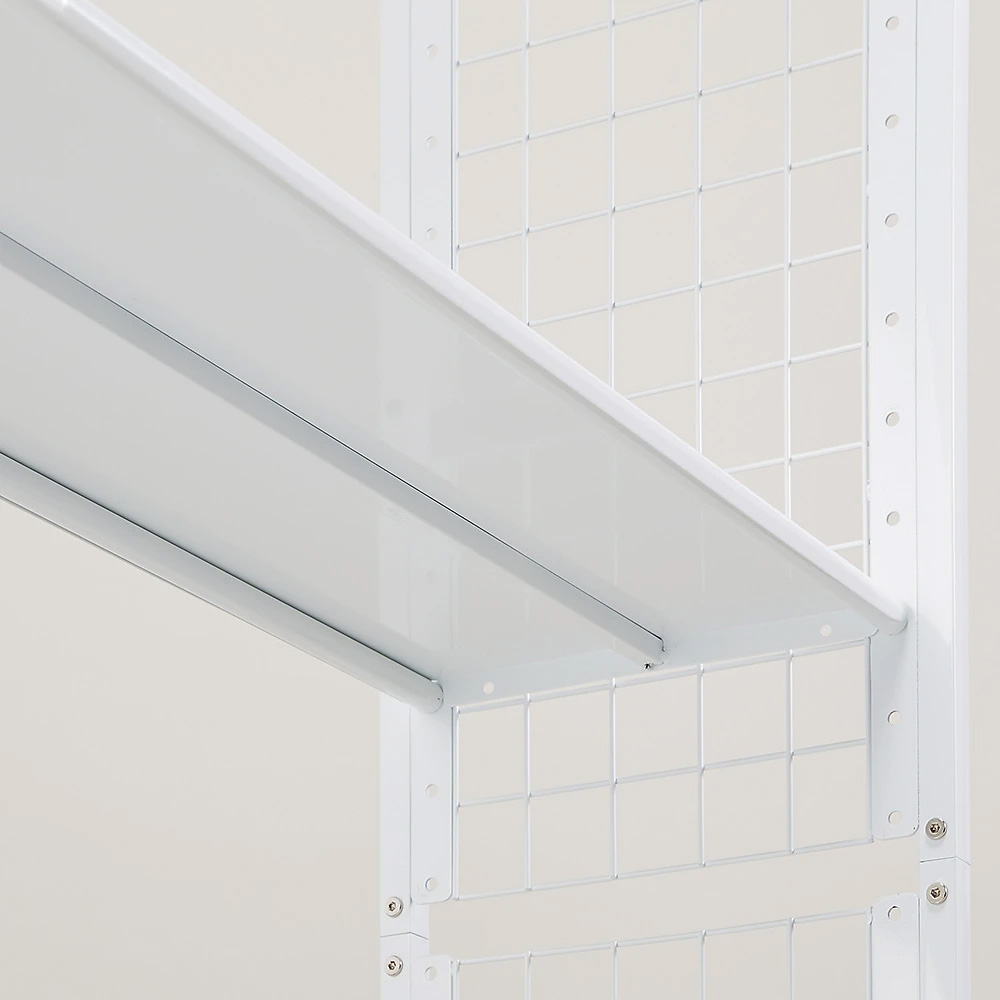 ●側面には落下防止用のネットが付いているため、サイドからのこぼれ落ちは心配ありません。●背面は背板がないため、コンセント前やスイッチ前でも設置できます。