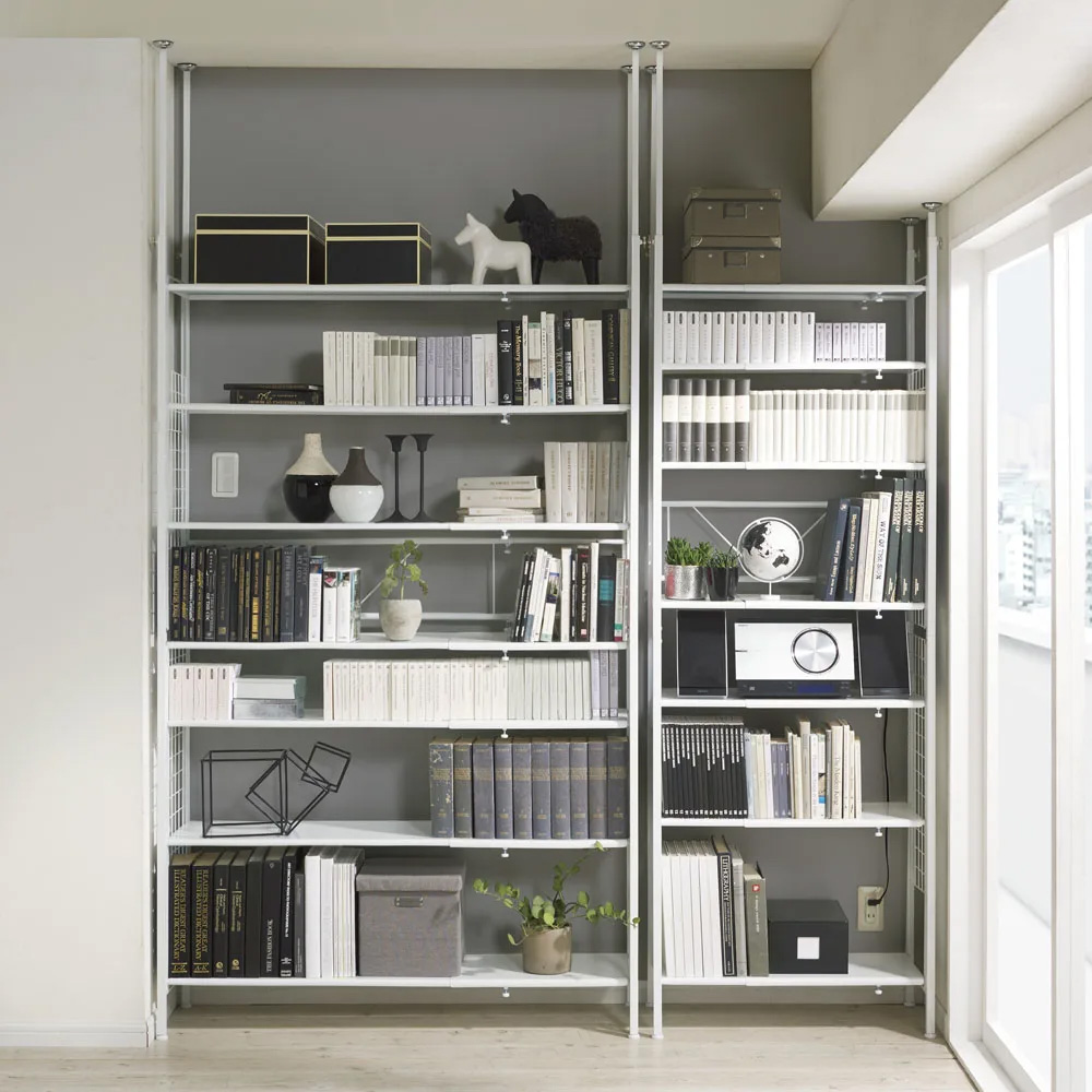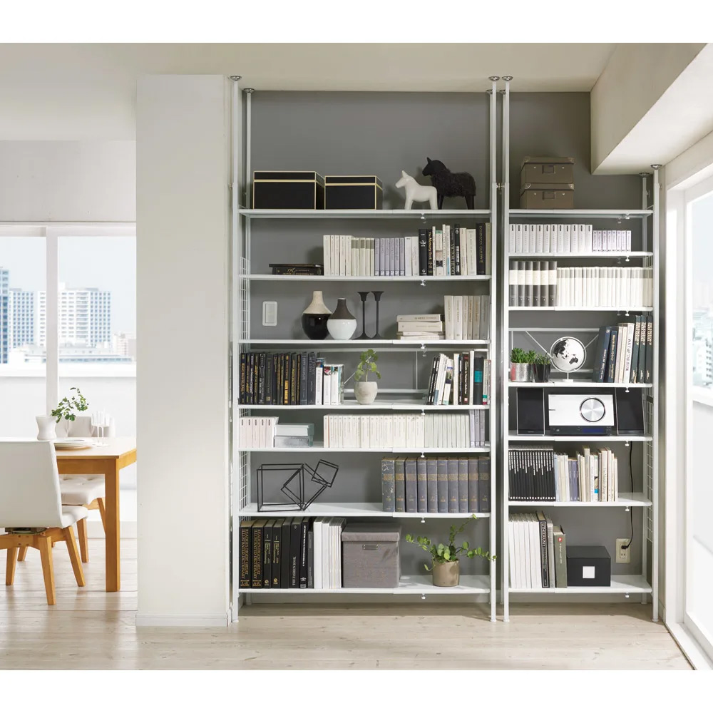 コーディネート例:幅と高さが伸縮するので、お引っ越しや模様替えなどで生活環境が変わっても対応できます。 ※写真の天井高さ260cm、梁下高さ210cm ※写真は奥行26cmタイプです。