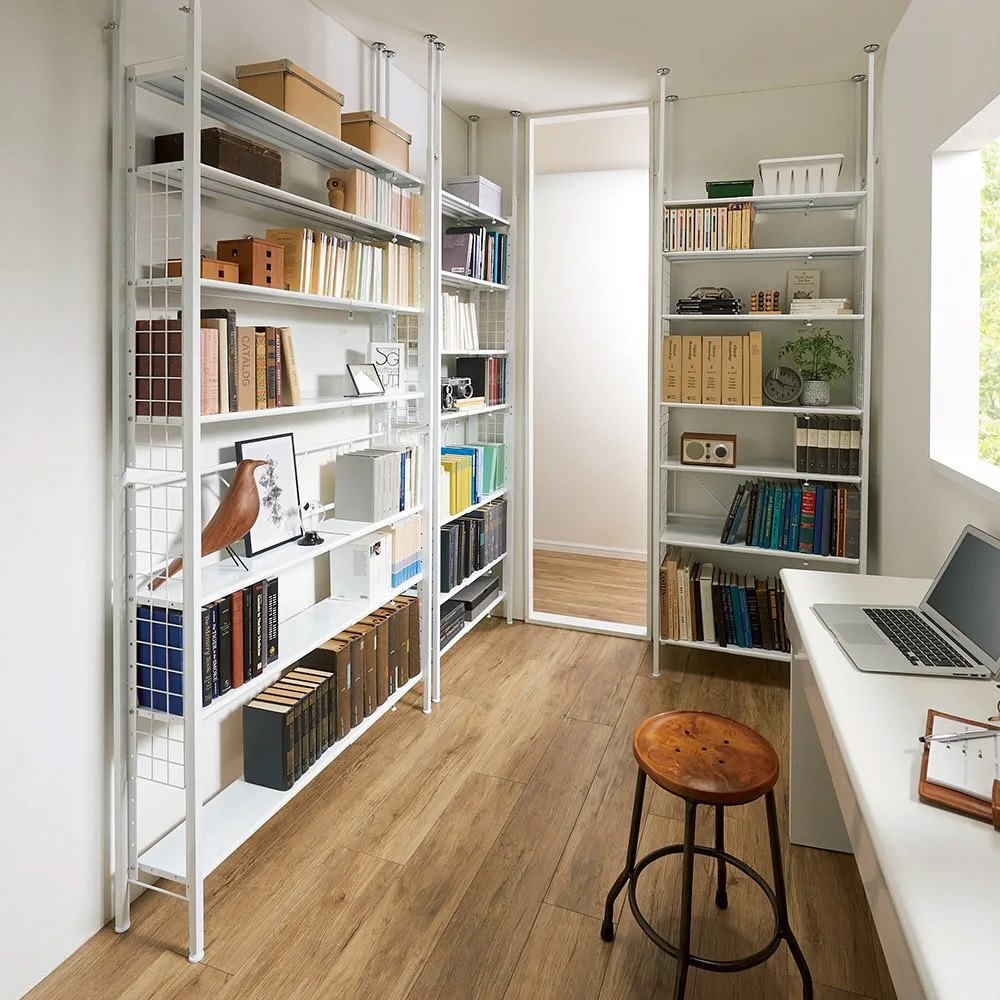 奥行きが薄いので、狭い場所でも大量収納。デンやサービスルームをワークスペースやパントリーとして活用できます。