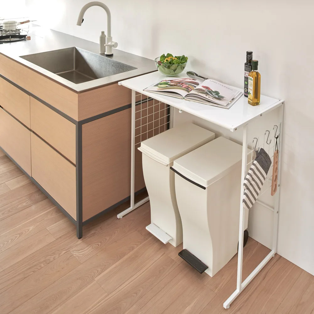 ●天板上は作業台や小物置き場に、下は飲料ケースの収納やゴミ箱置き場に、空間を上下別々の用途に活用できます。●使いにくかったすき間、片付かなかったすき間も使いやすいキレイな空間にできます。
