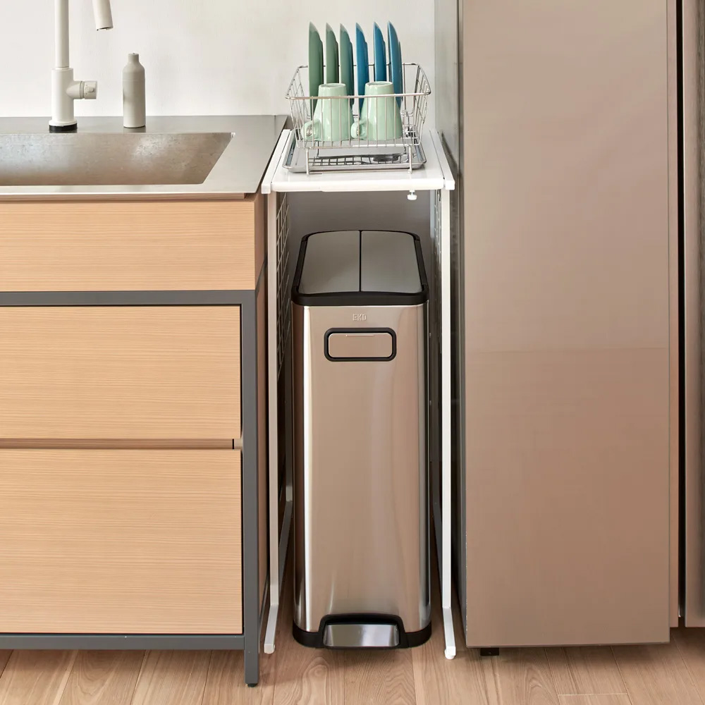 ●シンクと冷蔵庫のすき間やゴミ箱の幅に合わせて設置でき、スペースのムダを出しません。