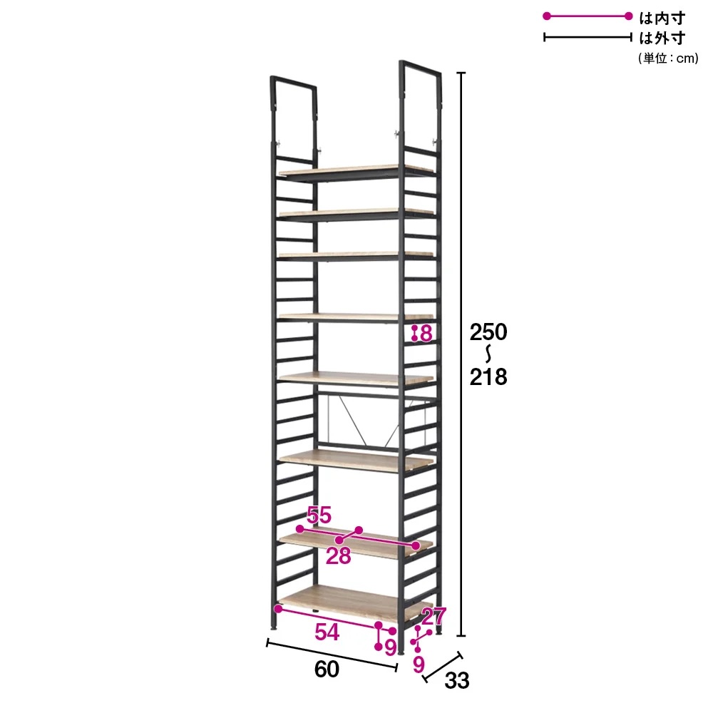 ブルックリンテイスト頑丈突っ張りラック 幅60cm奥行33cm高さ218~250cm