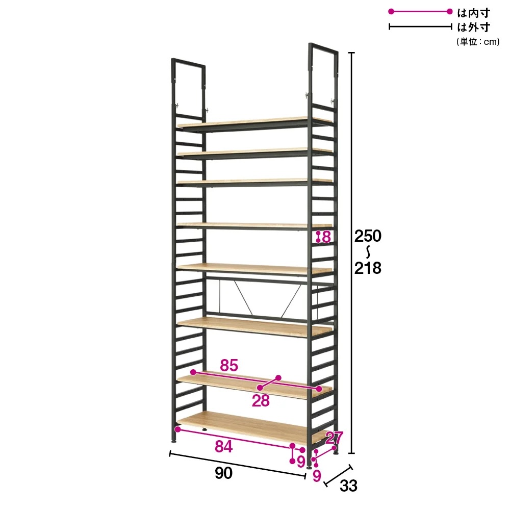 ブルックリンテイスト頑丈突っ張りラック 幅90cm奥行33cm高さ218~250cm