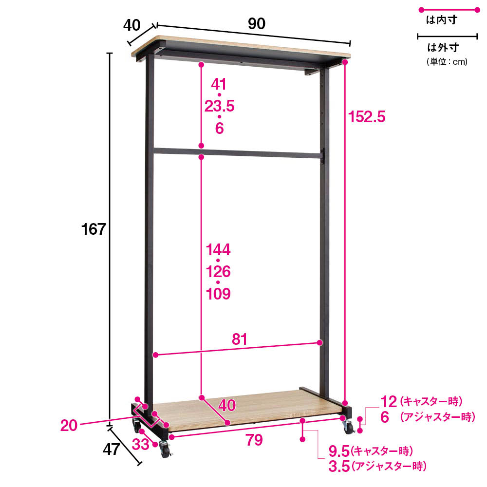 ■サイズ:幅90cm奥行47cm高さ167(アジャスター時161)cm
