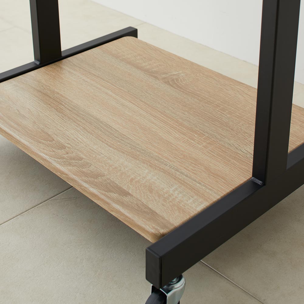 天然木のような風合いの棚とブラックアイアンが調和したヴィンテージ風デザイン。
