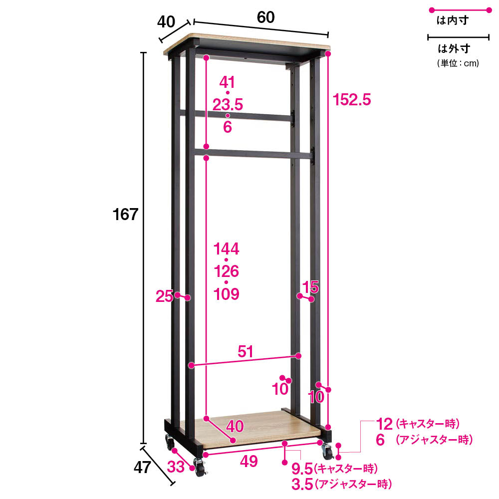 ■サイズ:幅60cm奥行47cm高さ167(アジャスター時161)cm