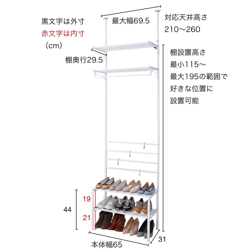 玄関のすき間を活用できる 突っ張りハンガーシューズラック 幅69.5cm シューズラック ケース 下駄箱 玄関収納 631611