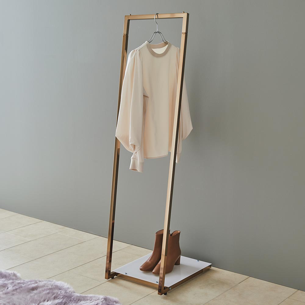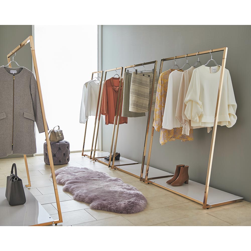 ピンクがかったゴールドカラーがお部屋をラグジュアリーに格上げ。収納するだけでなく、お洋服を選ぶ時間を華やかに演出します。