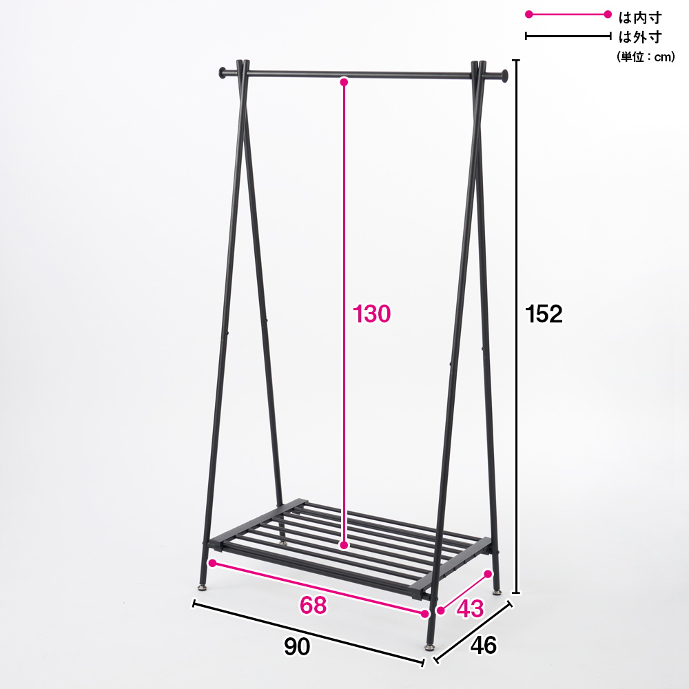 スチール製A型ハンガーラック 幅90cm奥行46cm高さ152cm コートハンガー コート掛け 衣類収納 631824