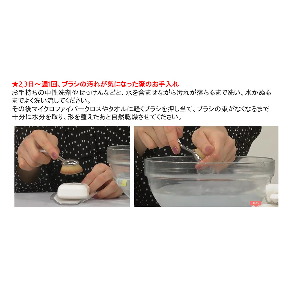 ◎ブラシの繊維は形状記憶されており、形崩れの心配が少ないのも◎。汚れが気になったら中性洗剤で洗ってください。洗った後は、水気を十分に拭き取り、形を整えて、自然乾燥させてください。不器用さんでも簡単&時短に使える秘密は〈使いやすいデザイン〉
