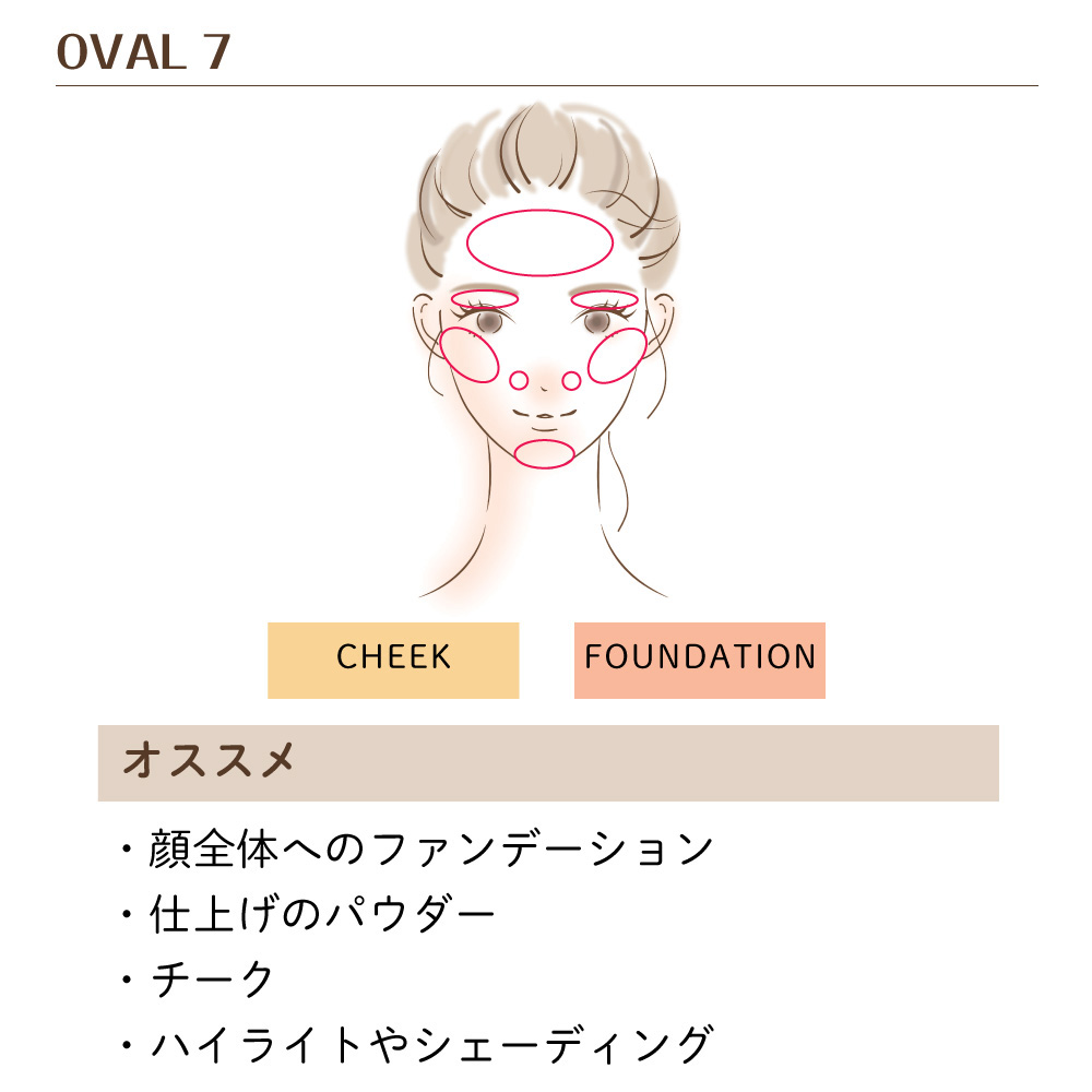 リキッドの場合は肌に直接のせ、このブラシでささっと顔全体に伸ばします。パウダーの場合はブラシの先に少しだけつけて、肌の上で中央から外へと伸ばしてください。小鼻など、しっかりカバーしたいところは、優しくクルクルと。
