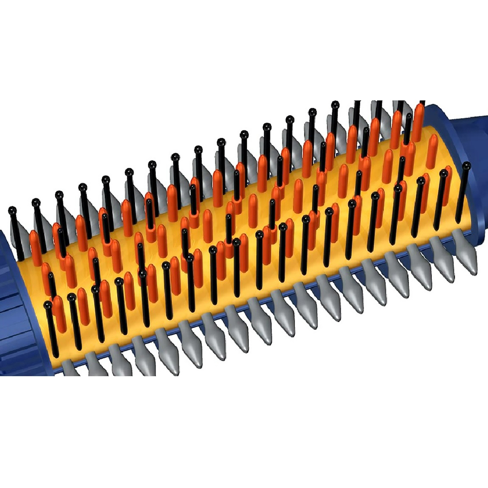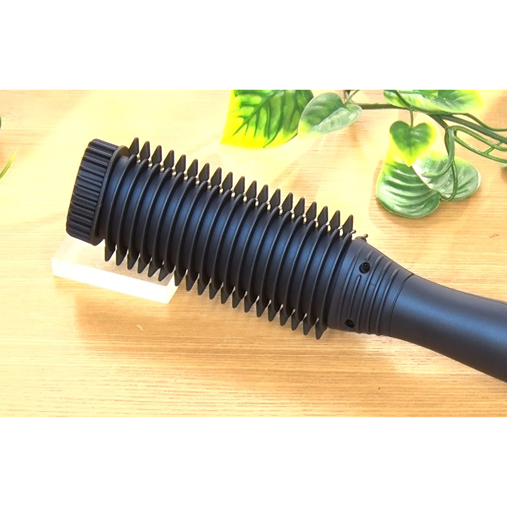 ブラシ背面のオーバルコームが髪の流れを整え、カールも作りやすい。