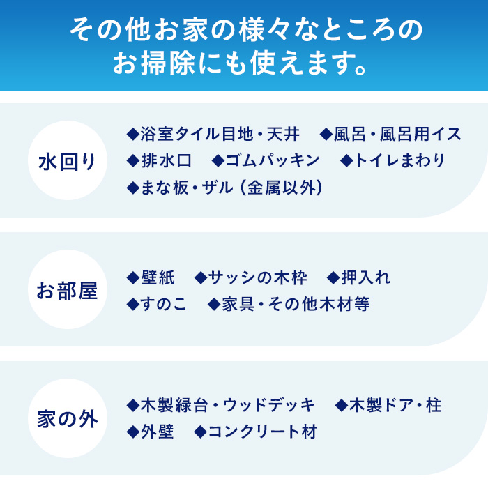 その他お家の様々なところのお掃除にも使えます。