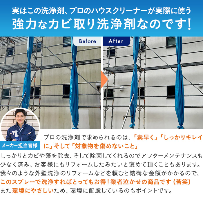 実はこの洗浄剤、プロのハウスクリーナーが実際に使う強力なカビ取り洗浄剤なんです!