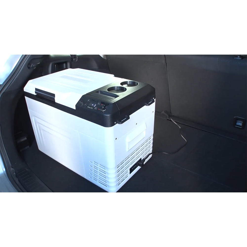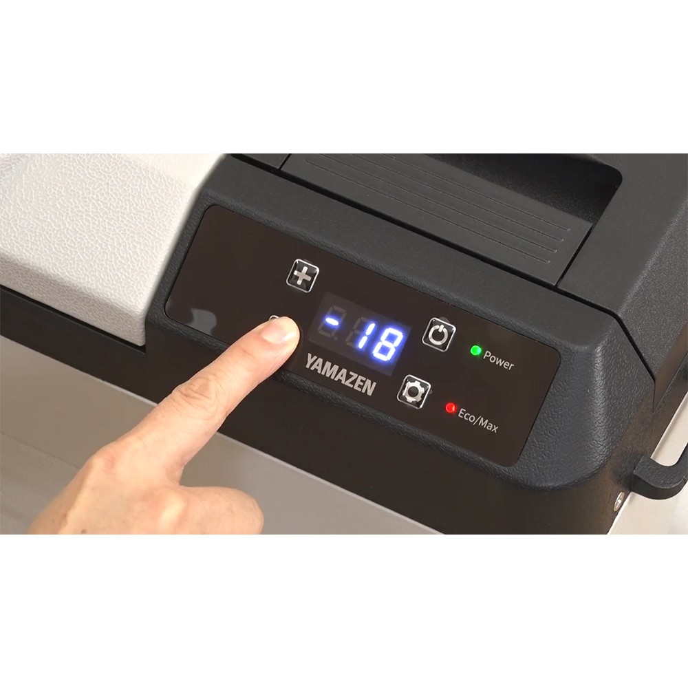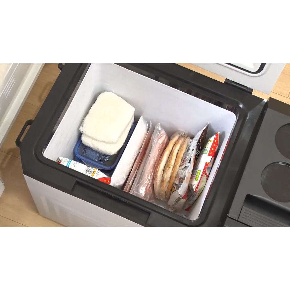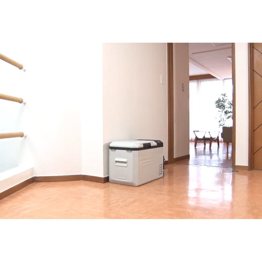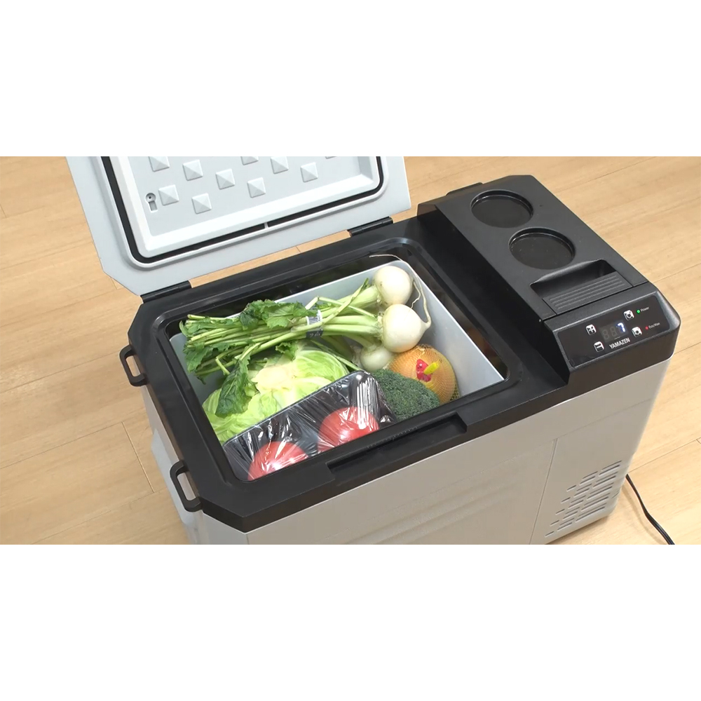 使い方は簡単!電源コードをコンセントにさして、温度設定するだけ。中身に合わせて‐18℃~+20℃まで1℃単位で設定できるから、冷凍庫にしたい時は‐18℃、野菜の保存なら5℃~7℃、ワインクーラーなら10℃~15℃に。さらに冷蔵庫のチルド室(約0℃)やパーシャル室(約‐3℃)の温度に設定すれば、肉や魚を半凍結や微冷凍で保存できます。車のシガーソケットも使えて、アウトドアにもおすすめ!