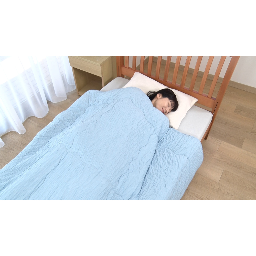 • 「中わた」に使用した「調温わた」には温度が27度以上になると熱を吸収する特殊素材が入っていて、蒸し暑い夜でも急激に暑くなるのを抑えてくれるので布団の中がちょうどいい暖かさに!