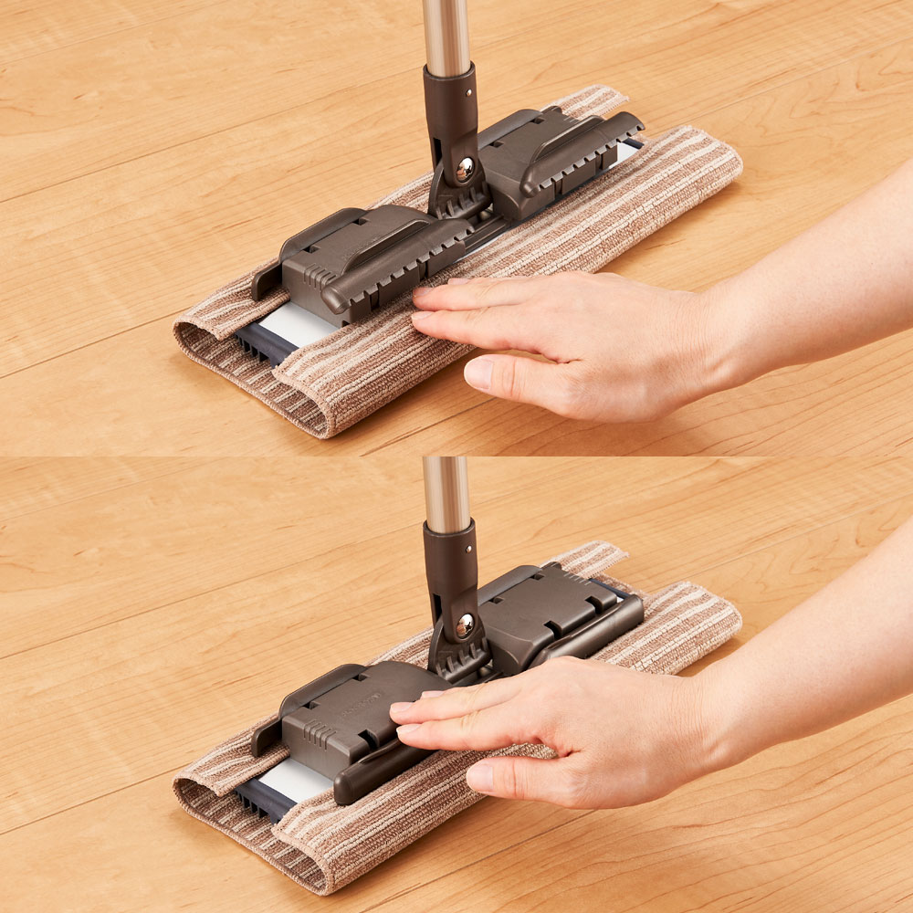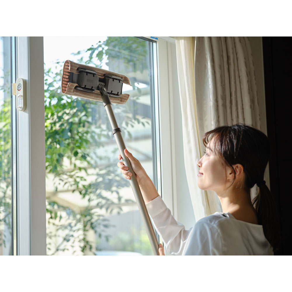 床の拭き掃除が立ったままできるのは本当にラク!さらにハンドル(柄)部分が80cm~最大135cmまで伸縮するから、壁や窓などの高いところもお掃除できます。◎壁などの側面だけでなく、床と壁が接する部分に使用されている巾木の上など、ホコリが溜まりやすい場所も簡単に掃除ができます。