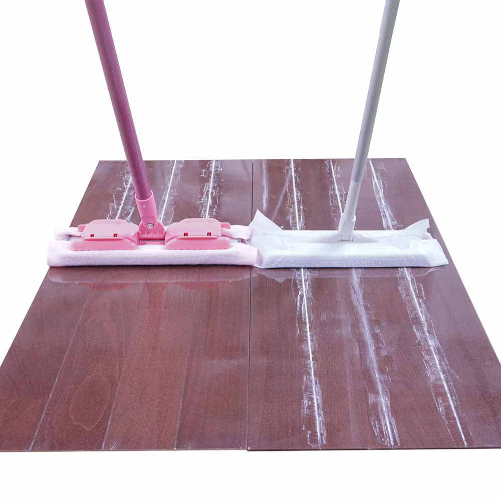 表面のホコリだけを集める従来型のフロアモップとは違い、目地の汚れまでしっかり落とします。(色は旧モデル)