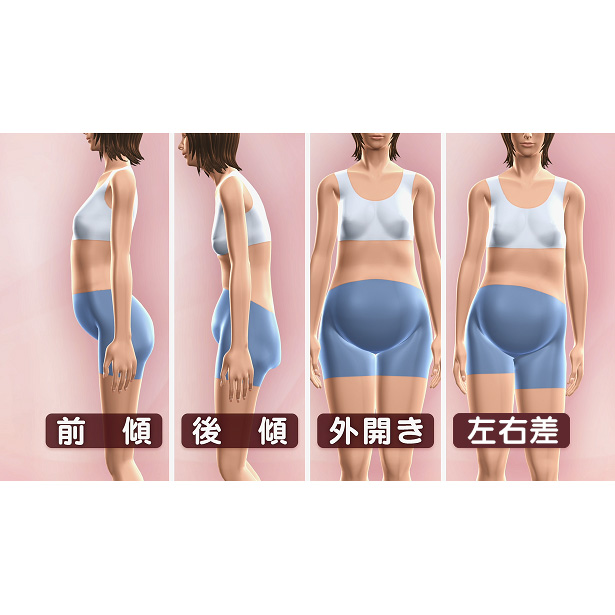 その補整力から、芸能人にもファンが多い「芦屋美整体プロリセットショーツ シリーズ」。体型崩れの要因として多いのが骨盤の傾きで、大きく分けて「前傾」「後傾」「外開き」「左右差」の4パターン。