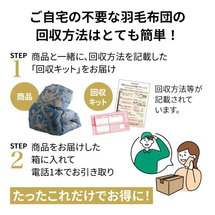 不要な羽毛布団を回収してくれる無料サービス付き!