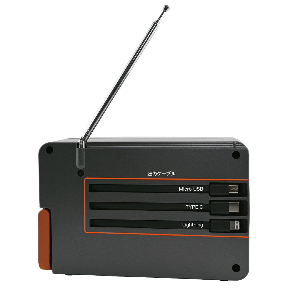 ●背面に内蔵ケーブル3種付き(iPhoneライトニング/マイクロUSB/タイプC)