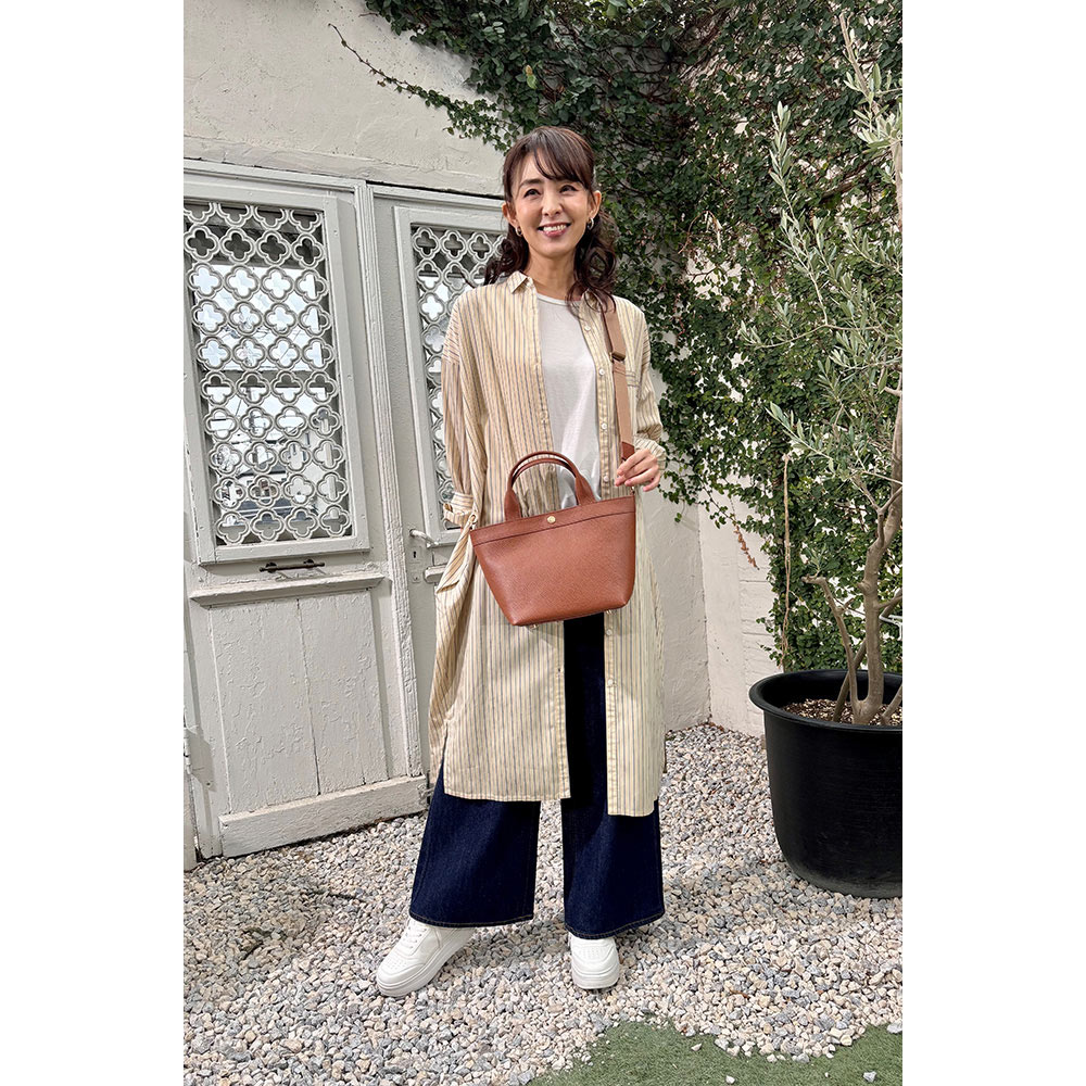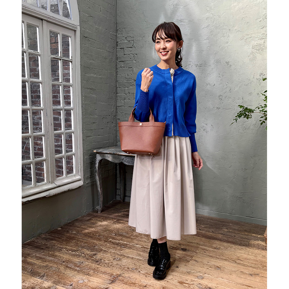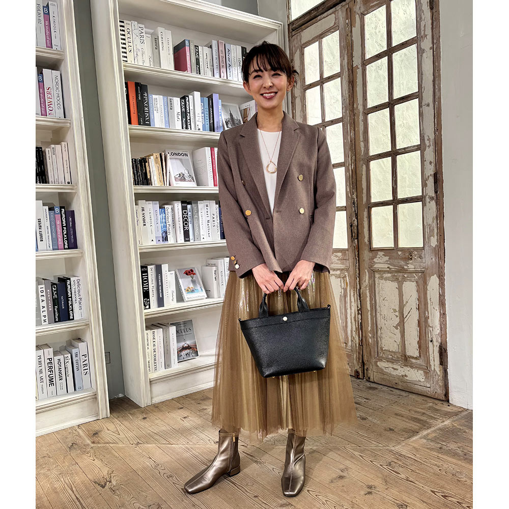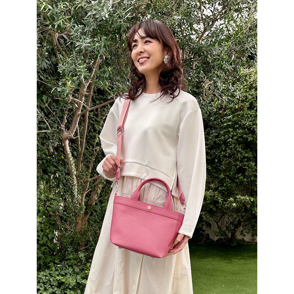 今、バッグも財布もミニがトレンド。特にトートバッグは多くのブランドでも展開するアイテムですが、千秋さんは女性らしい「かわいいサイズ感」にとにかくこだわりました。流行のフェミニンな装いにぴったりで、カジュアルにも合わせやすく、上品でおしゃれな印象に見せてくれるのはさすが。お出かけするのが楽しくなりそう。