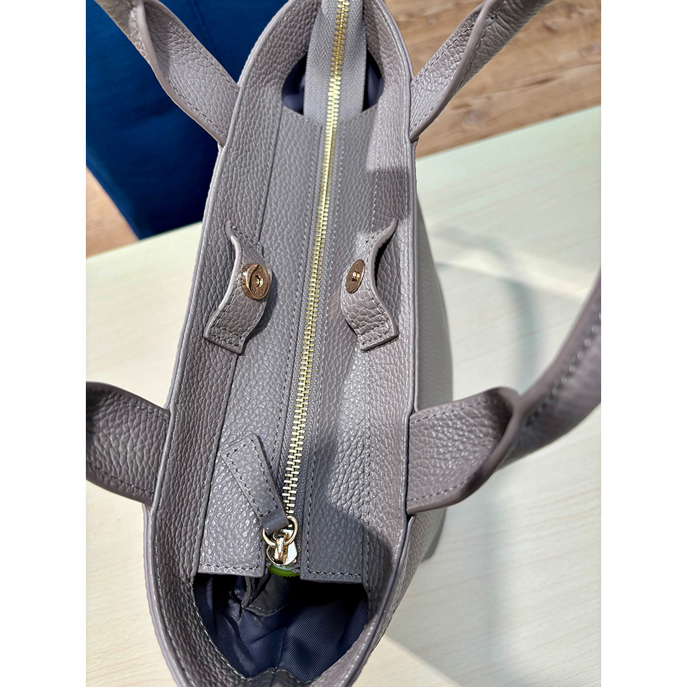 上質なイタリアンレザーを採用したのも千秋さんのこだわり。しなやかで手触りがよく、しかも軽い!表面にシュリンク型押し加工を施すことで、柔らかいのに傷がつきにくく、毎日ガンガン使えます。