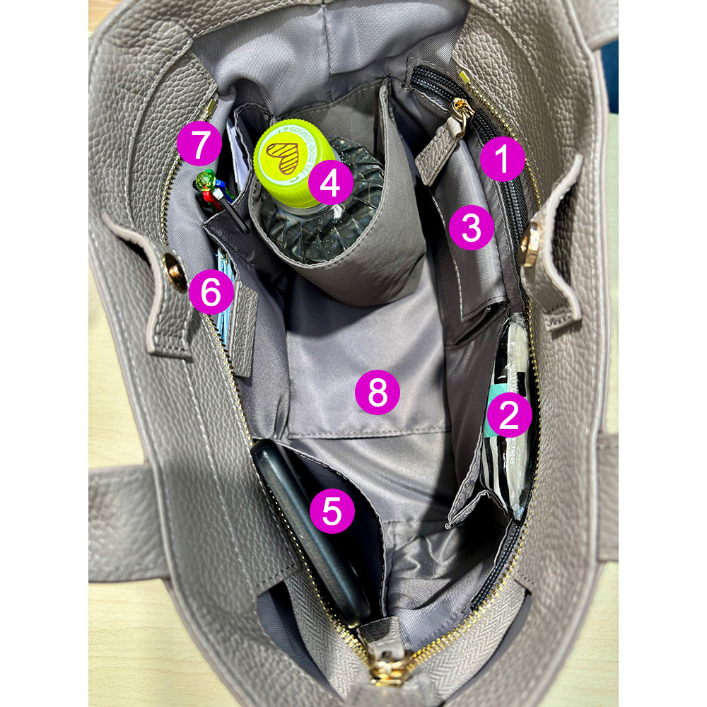 ポケットの豊富さも千秋さんバッグの特長で、今回は内部に8個設置。収納力があるだけでなく、整理整頓してスッキリ入れられるのも便利。バッグの中でモノが迷子になる心配がなくなりそう。