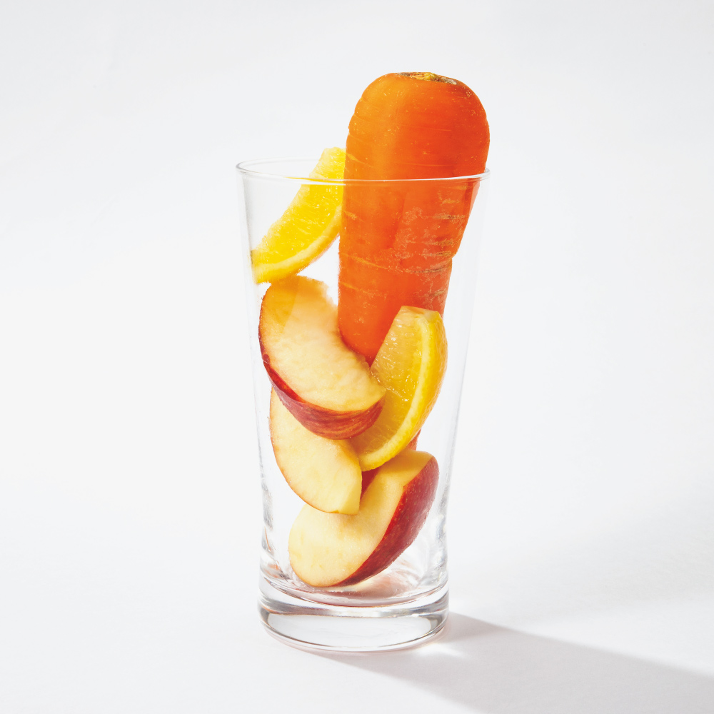 (イメージ)コップ1杯(180ml)に人参約1本、りんご約1/2個、レモン約1/8個