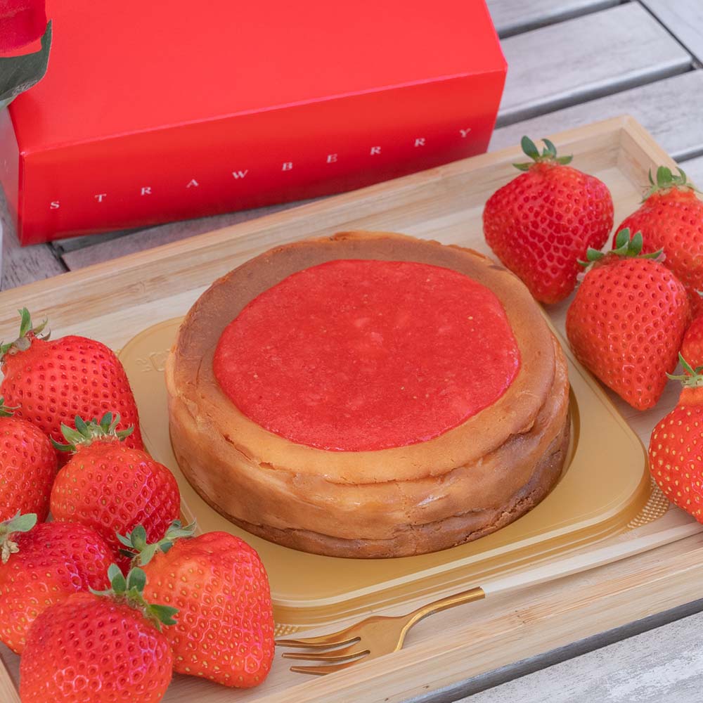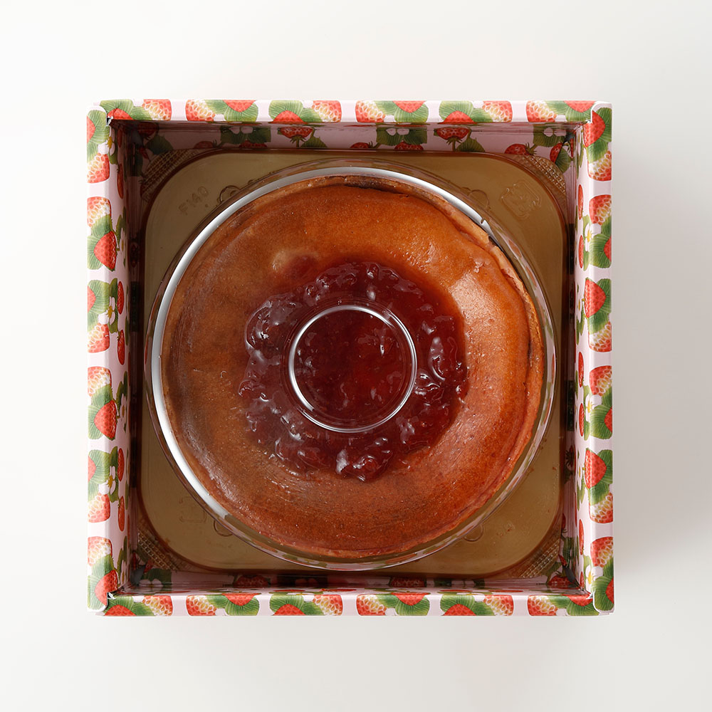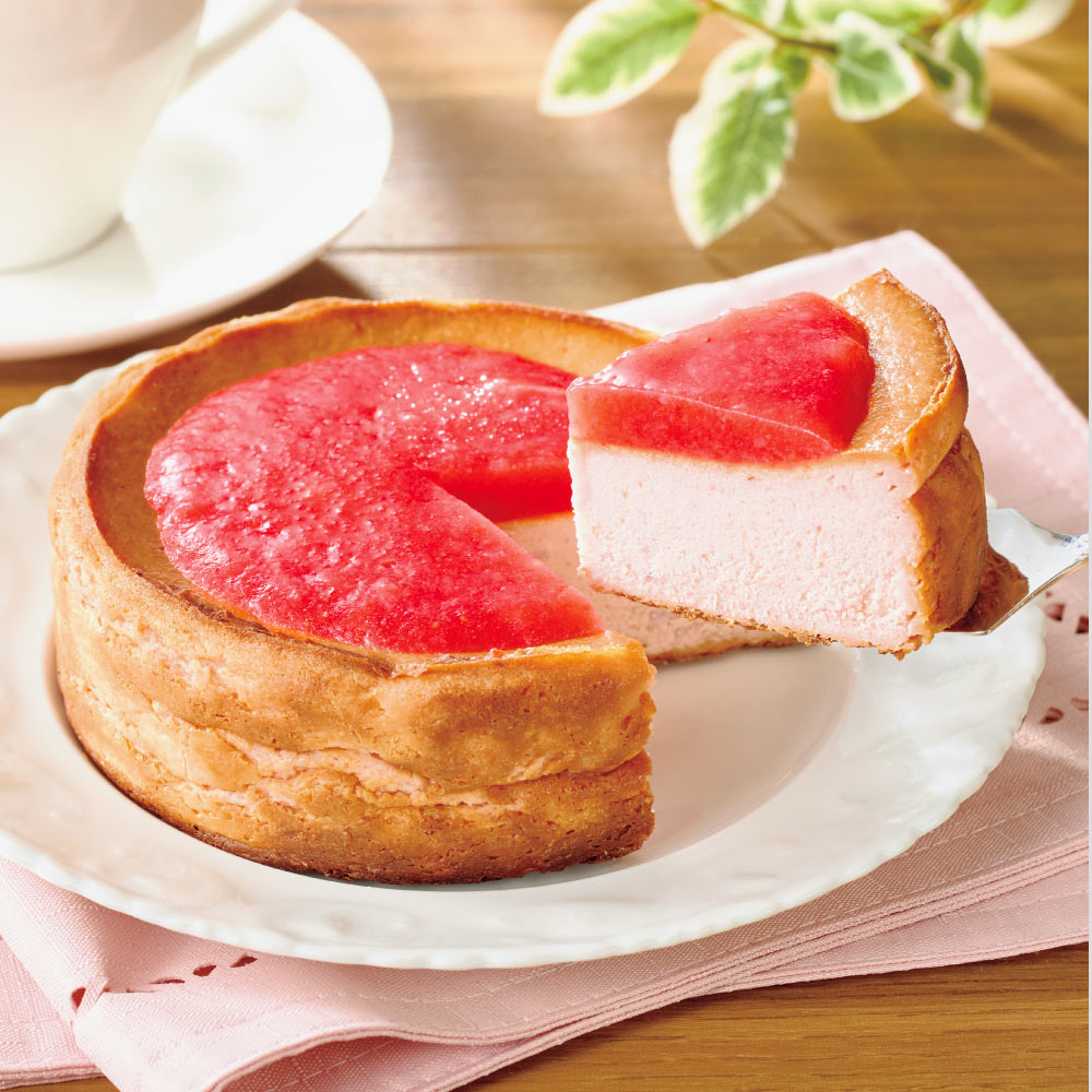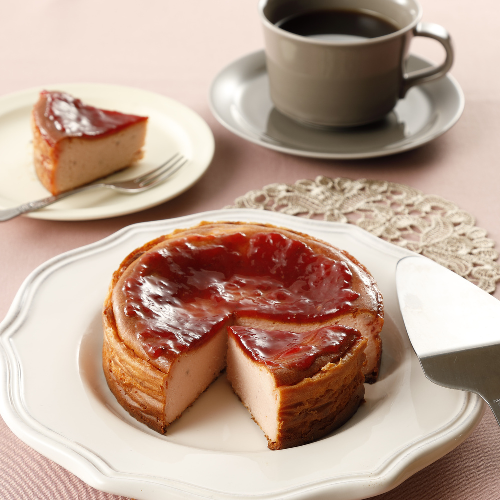 あまおうをふんだんに使った真っ赤な手づくりソースが自慢の一品。土台のベイクドチーズケーキには、ニュージーランド産のクリームチーズ、鹿児島県産の生クリームを使って、一つ一つ手づくりでじっくりと焼き上げました。