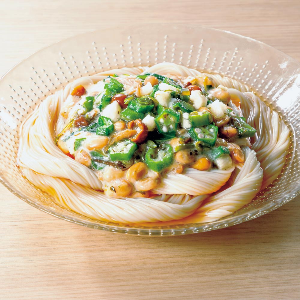 ※(1)調理例 【お客様の声】 豆腐、素麺等に解凍してすぐに使えるので夏場には重宝してます。薄味ですが逆にアレンジがし易いです。豆腐には鰹醤油でさっぱり一品に。 素麺には納豆をプラスしてさらにネバネバぶっかけ麺で。