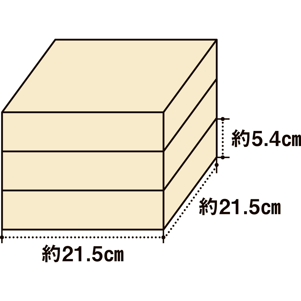 ■お重のサイズ:約21.5cm×21.5cm×5.4cm×3段
