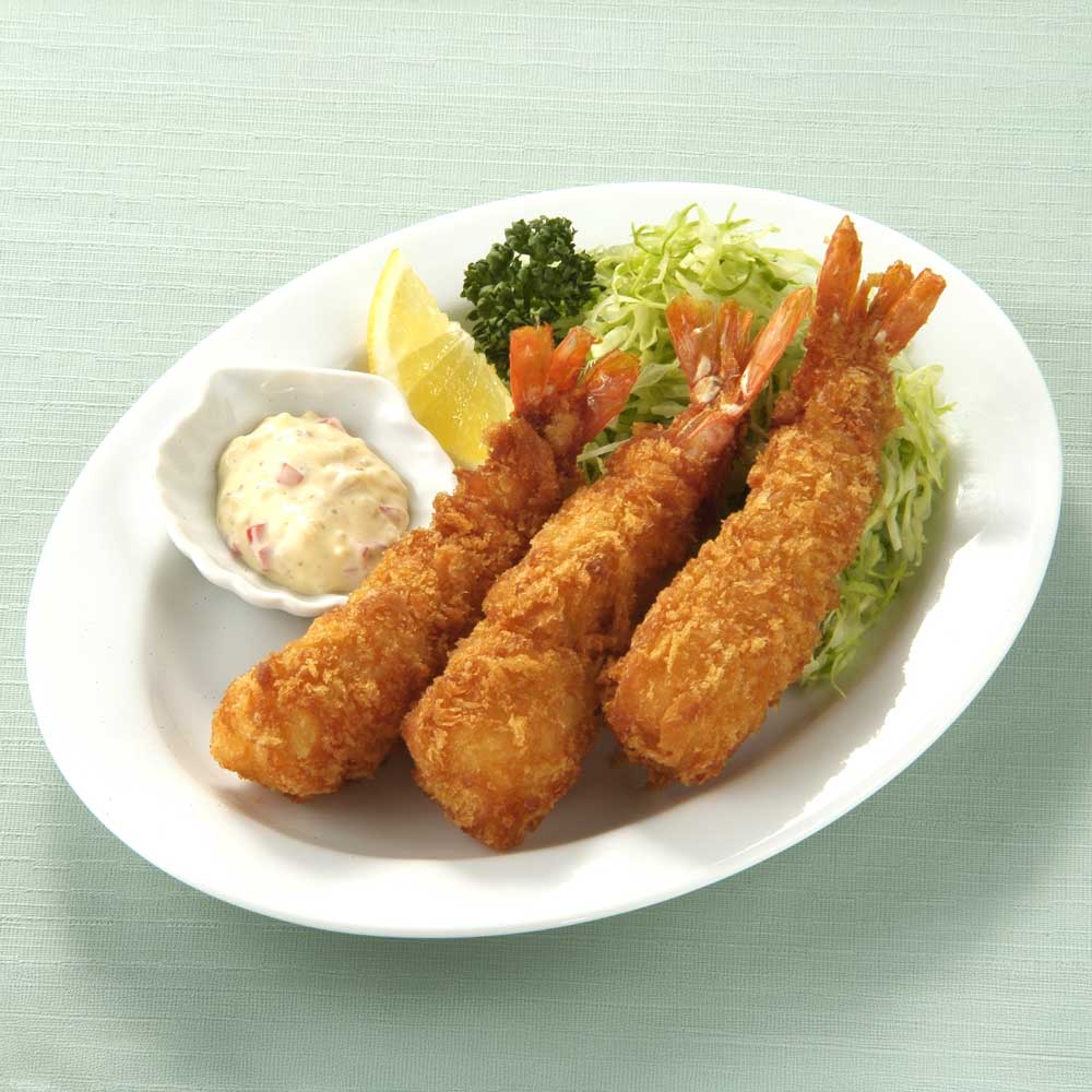使用しているエビは、インドネシアで養殖されたもの。じっくり育てられたエビは成長速度が遅いため、旨みがしっかりと凝縮されており、プリプリとした食感が特徴です。身が締まっているため、一口食べるごとにエビの風味が口いっぱいに広がります。【生パン粉でカリッとふっくら】