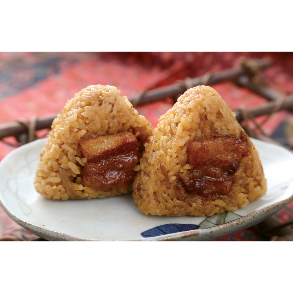 国産米と国産もち米を炊き込んだご飯に赤身肉と牛蒡を加え角煮の旨味が溶け出したタレをまんべんなく混ぜたご飯にとろとろの角煮を乗せたおにぎりです。