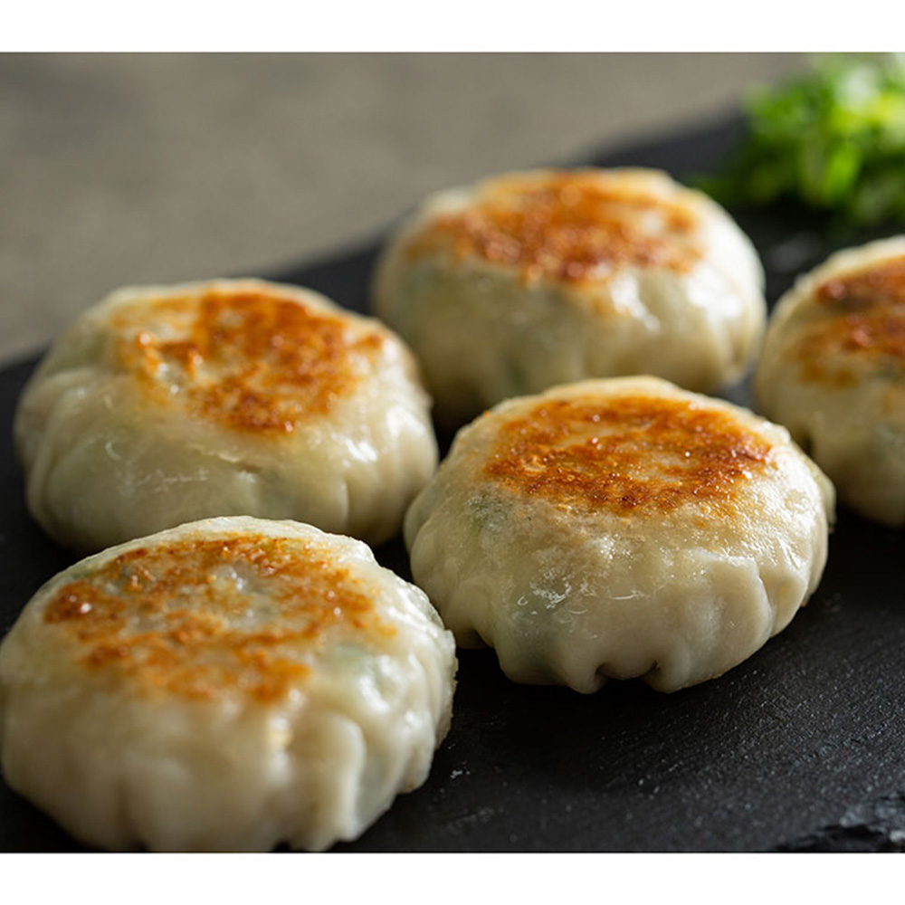 ■お召し上がり方:温めたフライパンに油をひき、冷凍のままの九条ねぎまんじゅうを並べます。120ccほどの水を入れ、フライパンに蓋をして中火で蒸し焼きにします。(約3~4分程度)