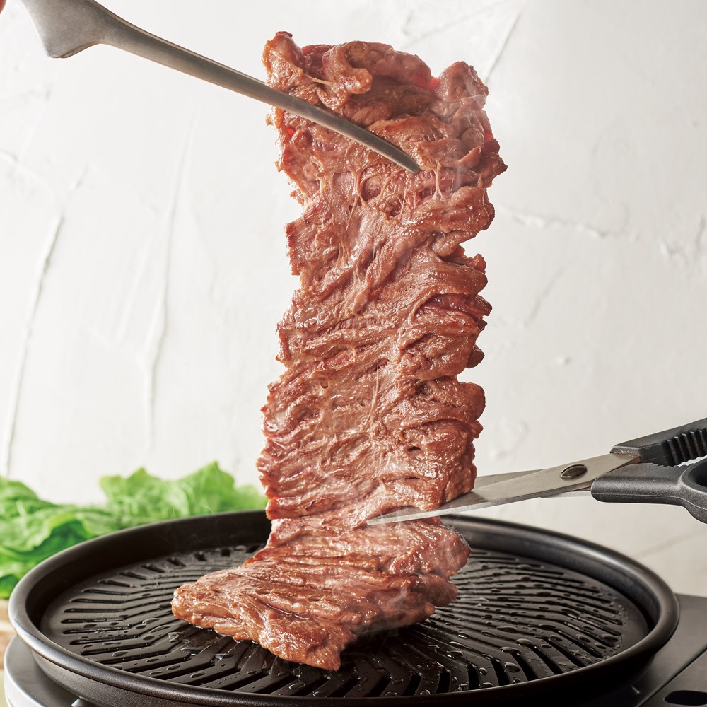 見た目のインパクトもすごいですが、味にももちろん自信アリ。ハラミはスリット加工しているので柔らかな仕上がり。濃い味付けで、一口サイズに切ると溢れる肉汁が堪りません。大人数でワイワイ盛り上がりますよ!商品画像の説明。