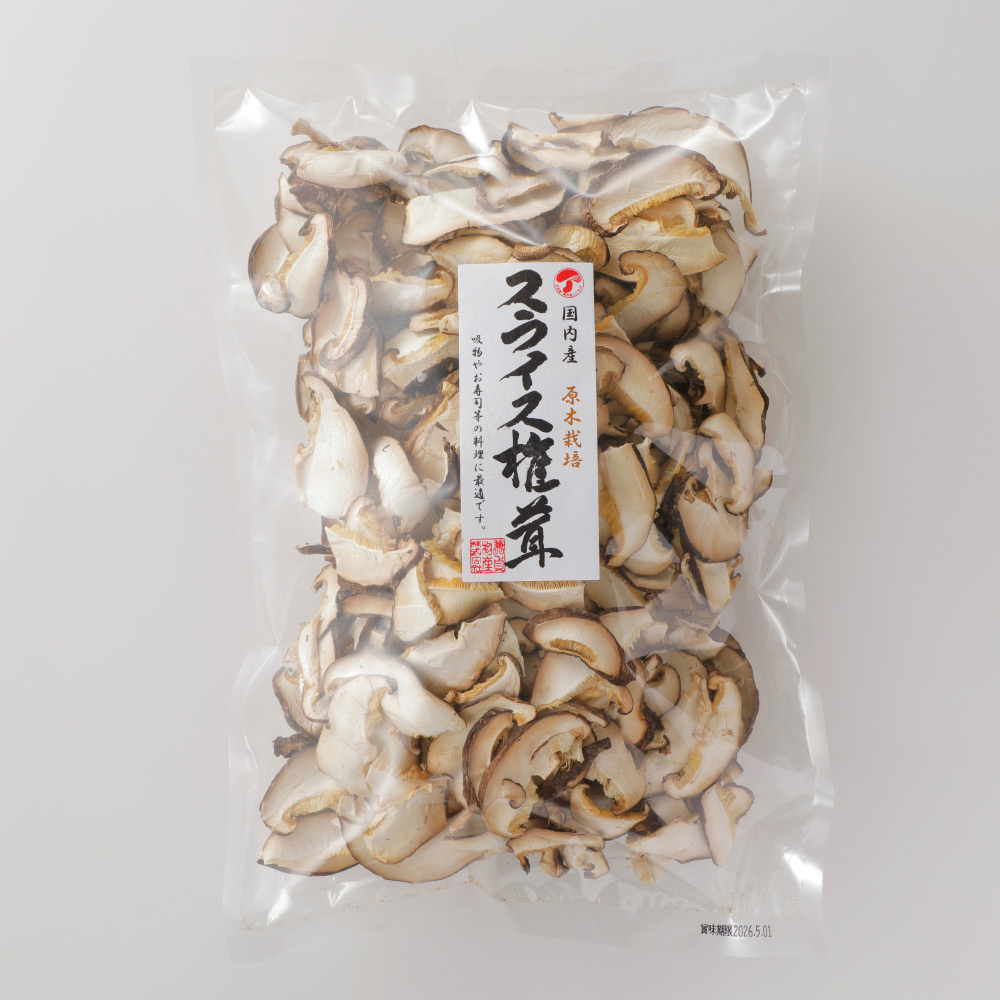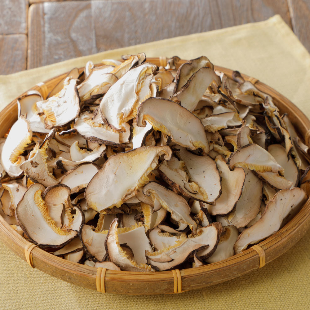 宮崎県で栽培された原木しいたけを新鮮なうちにスライスして乾燥加工した商品です。原木栽培による風味豊かで香り高い椎茸がじっくり育まれ、四季の寒暖差や自然条件によって旨みが凝縮されています。