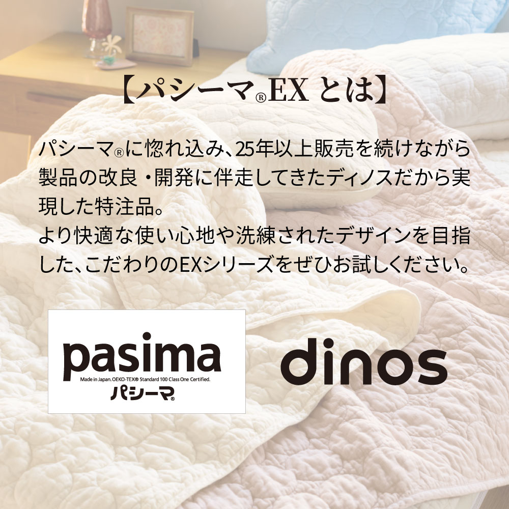 ディノスはおかげさまで創業55周年。殿堂入り寝具・パシーマ(R)を通してお客さまに愛と感謝をお伝えしたい。パシーマ(R)ファンの皆さまにも喜ばれるものをお届けしたい。そんな想いから生まれたのが、トレードマークであるキルトをハートパターンにアレンジしたスペシャルデザインです。愛用者の方も、初めての方も、ディノス限定の愛あふれるパシーマ(R)をお見逃しなく!