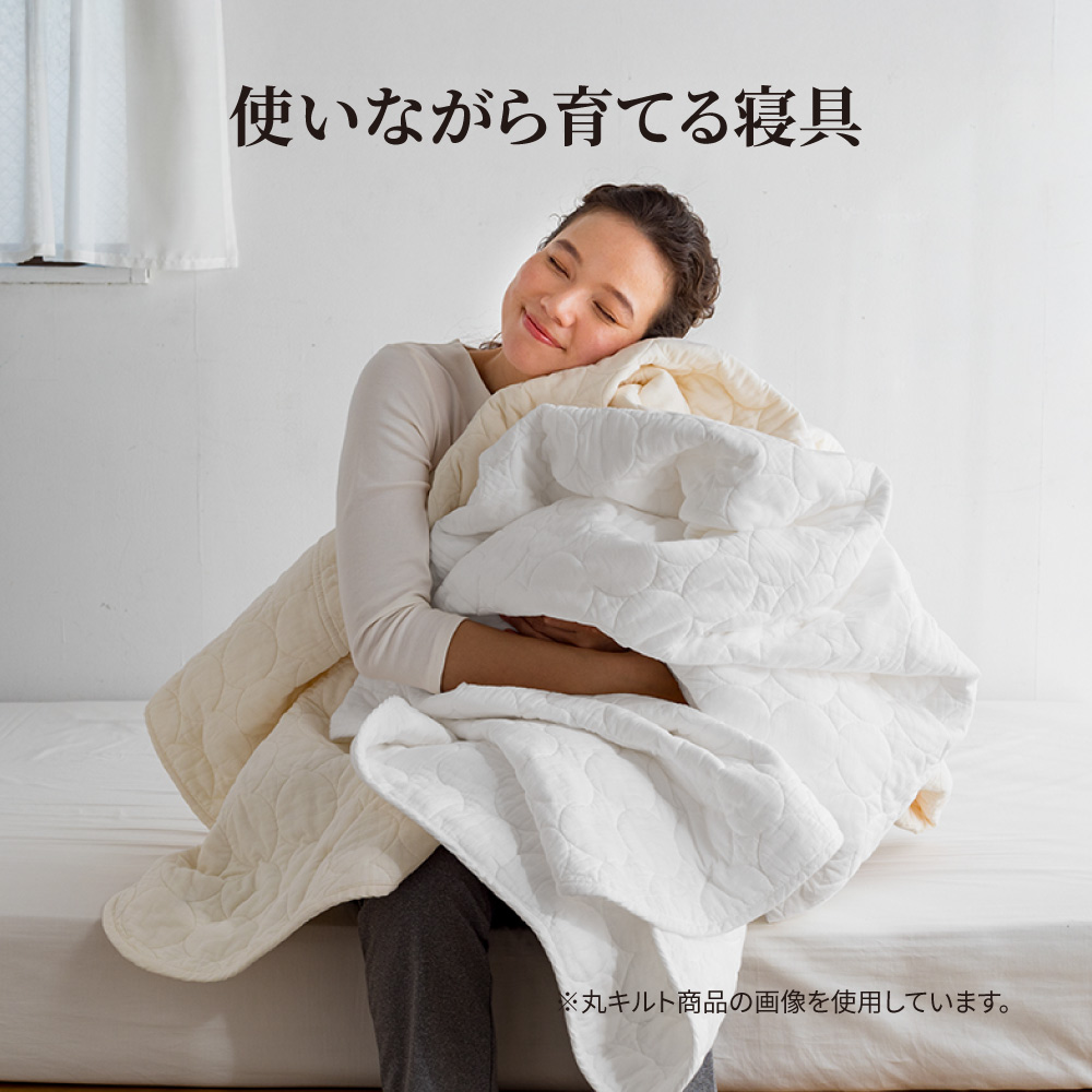 不純物を医療用レベルの純度まで取り除いたガーゼで、繊維が長く丈夫な脱脂綿を包みました。たっぷりの空気を含む構造が、夏はムレを防ぎ、冬は心地よい暖かさをキープ。オールシーズン使える汎用性も魅力です。季節の変わり目は暑さ寒さに1枚で対応。