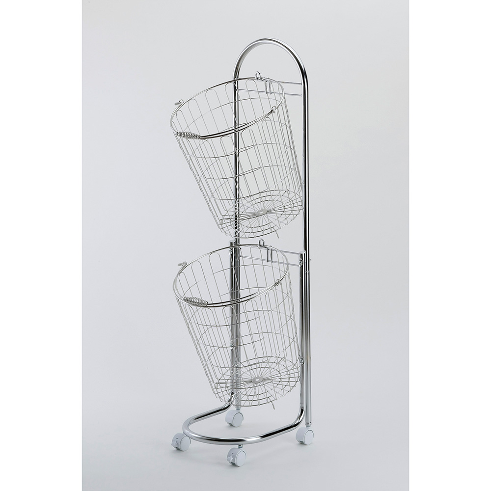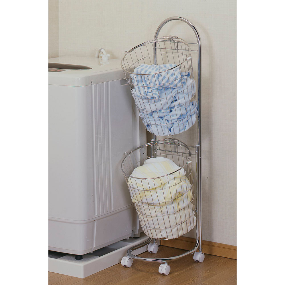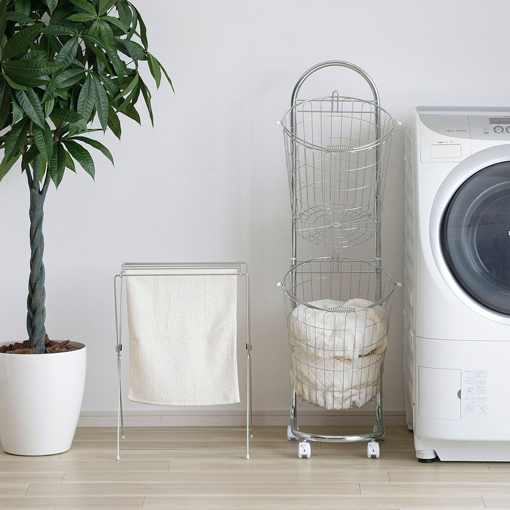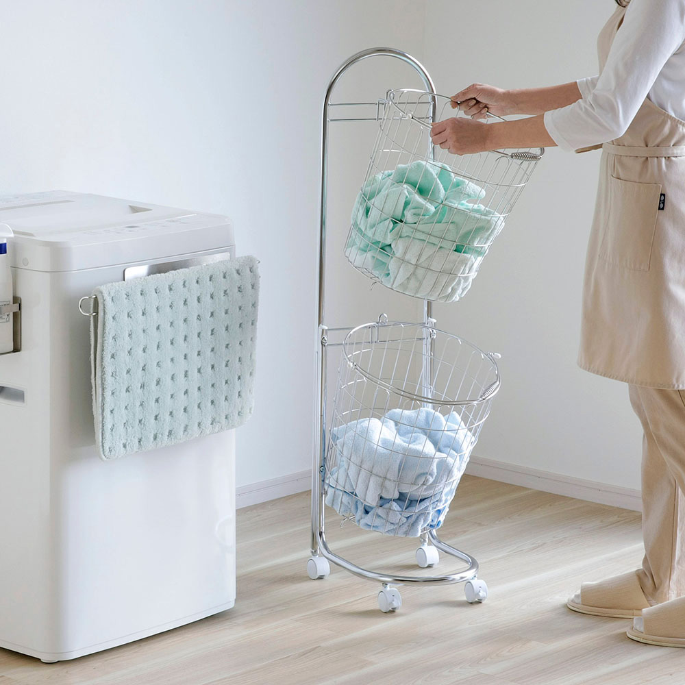 ●2段式なので省スペース。バスケットは洗濯物の出し入れがしやすいように斜めに掛けられています。バスケットは簡単に取り外せます。単体でもお使いいただけます。