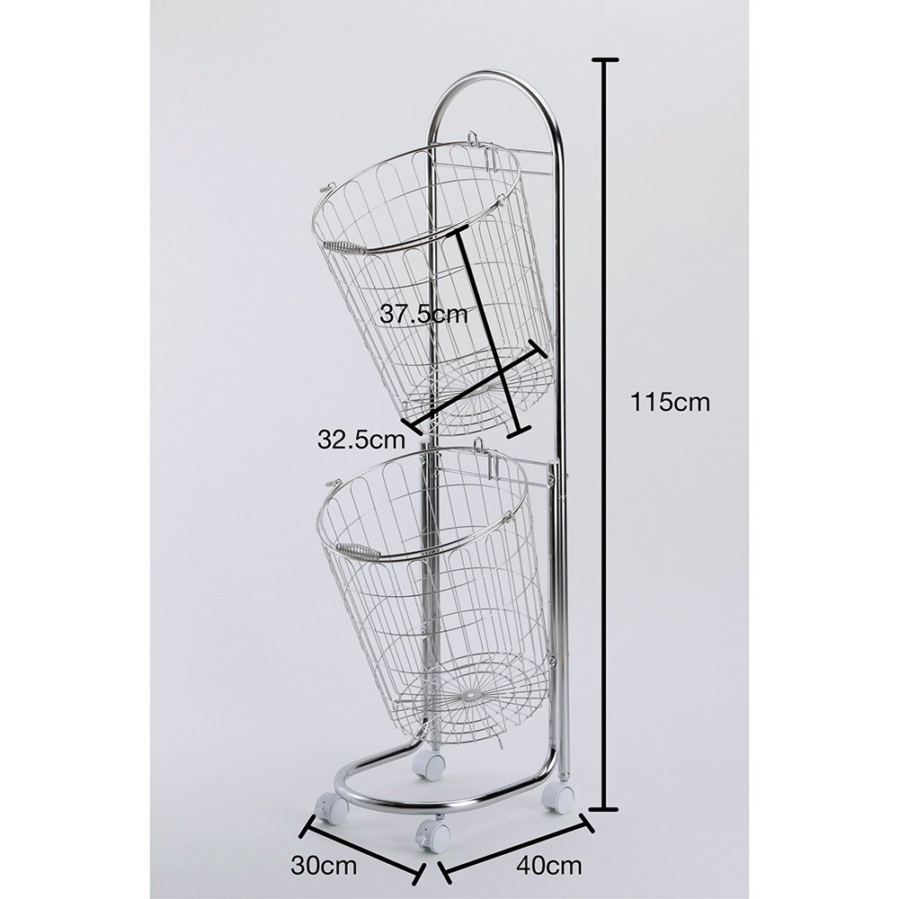 ●バスケットは2個付で、1個あたりの大きさは高さ37.5cm、外径32.5cmのため大量に洗濯物を入ることができ、仕分けにも便利。