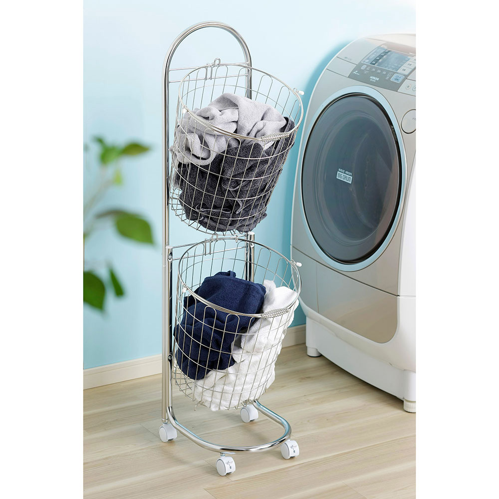 ステンレスランドリーバスケット2段 大 ランドリー 洗濯かご トイレ 洗面所 ランドリー収納 LM0187