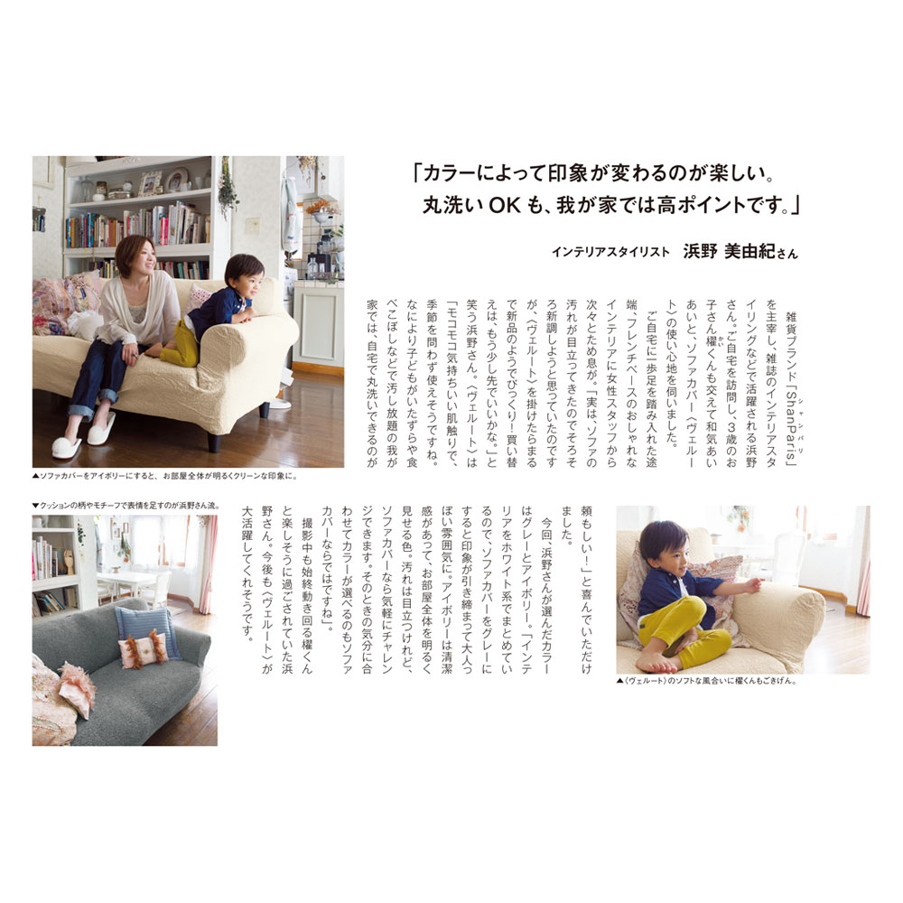• 面倒な手間はいりません。 ソファをひっくり返したり、裏でヒモを結ぶなどの面倒な作業もなく、簡単に掛けられます。