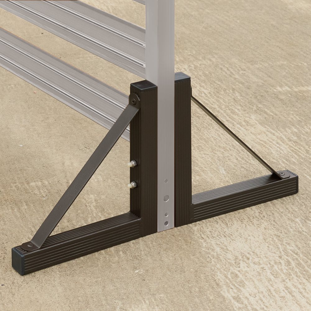 固い場所では、専用スタンド(別売)を取り付けて自立。スタンド使用時はフェンス同士の連結不可。
